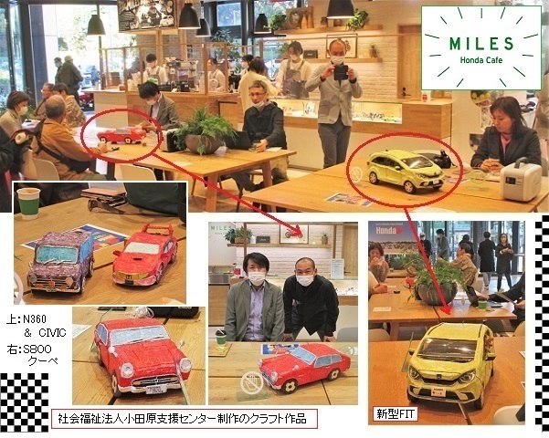 Honda青山本社1階のウエルカムプラザ青山にあるMILES Honda Cafeにおいて、社会福祉法人小田原支援センターの皆様が手作りしたHonda車のクラフト作品を展示頂きました。一般の方々が大勢行き交うHonda様の交流スペースでの企画展「Honda ハート Joy for Everyone~ひとりひとりの喜びのために~」への参画が実現しました。