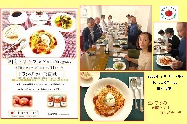 2023年2月1~14日、Honda和光ビルの来客食堂において、「ランチで社会貢献/湘南とまとフェア」という企画を実施頂きました。私共が製造したトマトピューレを使ったメニューが登場!素敵なポスターも掲示頂き、お客様及びHonda社員の皆様にご賞味頂きました。