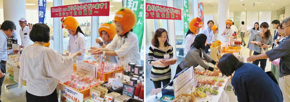 2014年6月より、ホンダ様の青山本社ビルの食堂売店において、「おやつで社会貢献」と銘打ち、定期的に福祉施設が手掛けるスイーツ類を販売させて頂き好評を博しています。