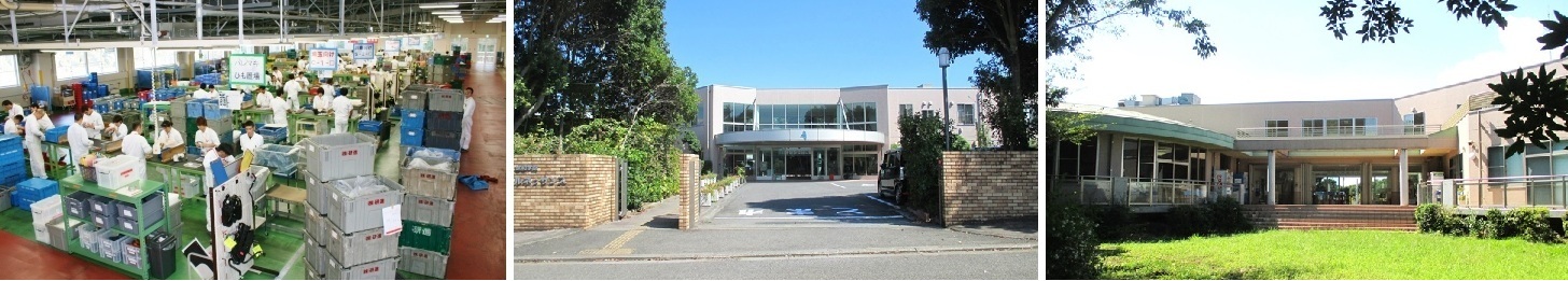 写真中:「進和職業センター」全景(左が工場、右が生活棟)