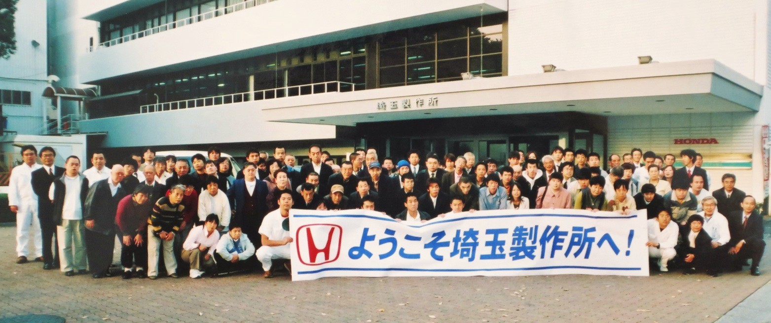 写真中:ホンダ浜松製作所勤務時代の出縄光貴(後列中央)