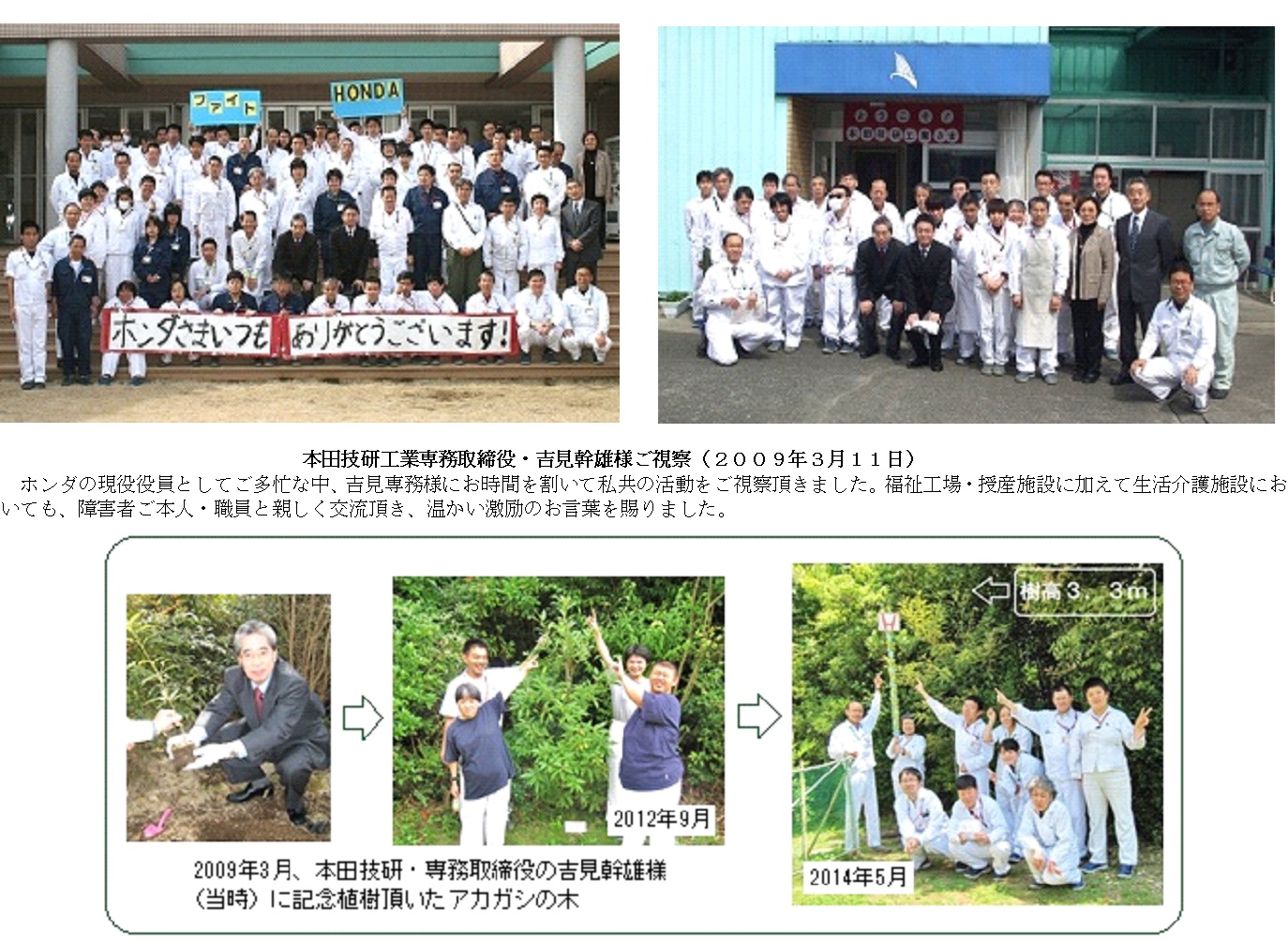 西田様、服部様をはじめ、ホンダOBの皆様には、授産事業開始当時から今に至るまで、変わらぬご厚情を賜っています。