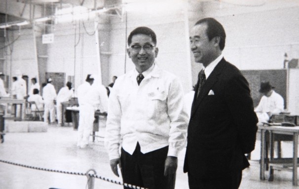 写真右:出縄光貴(研進 創設者)、出縄明初代理事長の実兄で、当時、本田技研工業(株)浜松製