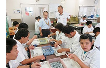 毎月開催される「QC(Quality Control)委員会」は、ホンダ車部品の仕事に携わる進和学園及び小田原支援センターの担当職員及び研進の社員が一同に会して、不具合の発生原因を徹底的に解明し対策を検討する重要なミーティングです。