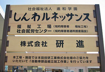 (株)研進は、社会福祉法人進和学園の福祉工場「しんわルネッサンス」内に事務所を置いて、学園と役割を分担しながら協力して業務を推進しています。