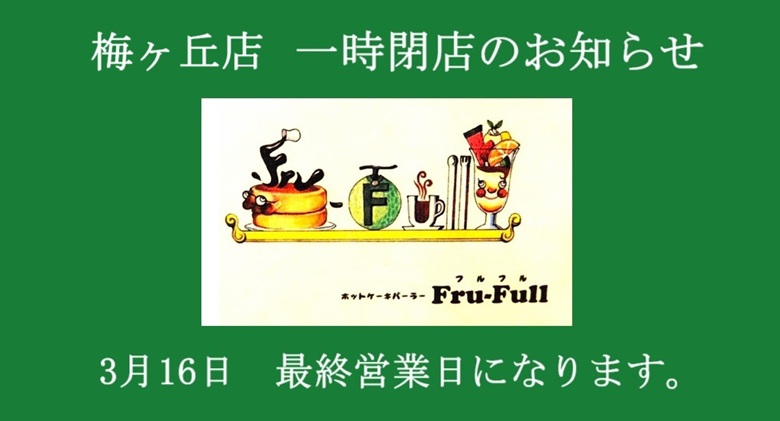 Fru-Full(フルフル)建物建替えによる一時閉店のお知らせ
