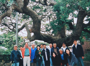 写真は、2007年秋に、市の保存樹である柳町西公園の「タブノキ」の実生を、許可を頂戴し採集した時のものです。道を挟んだ原田様のお宅の庭にも沢山の実生を発見、原田様のご厚意によりこちらも採集させて頂きました。それにしても、この「タブノキ」の見事なこと!隆々とした枝振りで迫力満点、圧倒される思いでした。色々な木をご覧になっている「まじぇる会」の皆様も大いに感心しておられました。昔、平塚には「タブノキ」が軒並み茂っていたそうです。この巨木の子孫を何とか残したいと思います。