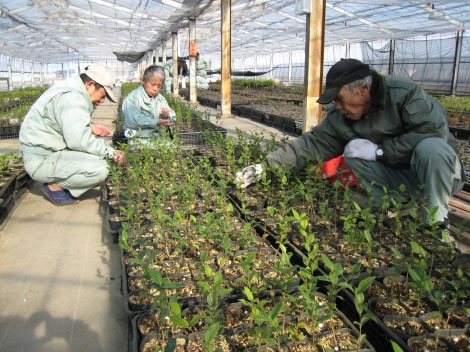 ■ 「進和職業センター」でのポット苗づくり(写真右)