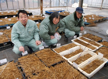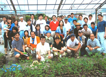 2007年6月30日、「まじぇる会」の皆さんにご指導を頂きながら、皆でワイワイガヤガヤと力を合わせ、半日で5,350個のポット苗を作りました。これが、これまでの最多記録となっています。