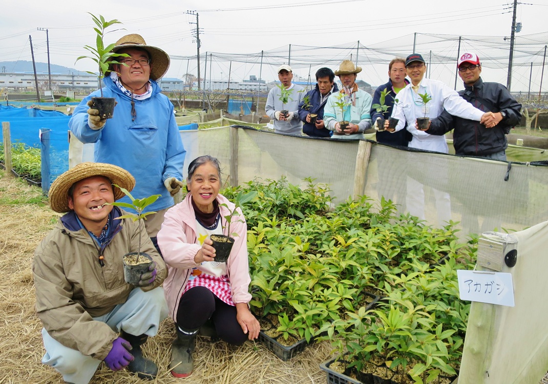 湘南国際村めぐりの森にも至近距離にあり、同地の主木であるタブノキ、スダジイ等の樹種を、先ずは200本程度栽培して頂くこととしました。