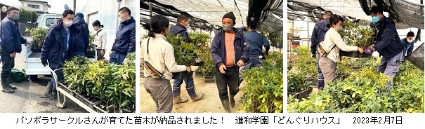 進和学園に加えて、これまで、次の福祉施設「どんぐりブラザーズ」の皆さんに苗木の栽培を委託しています。