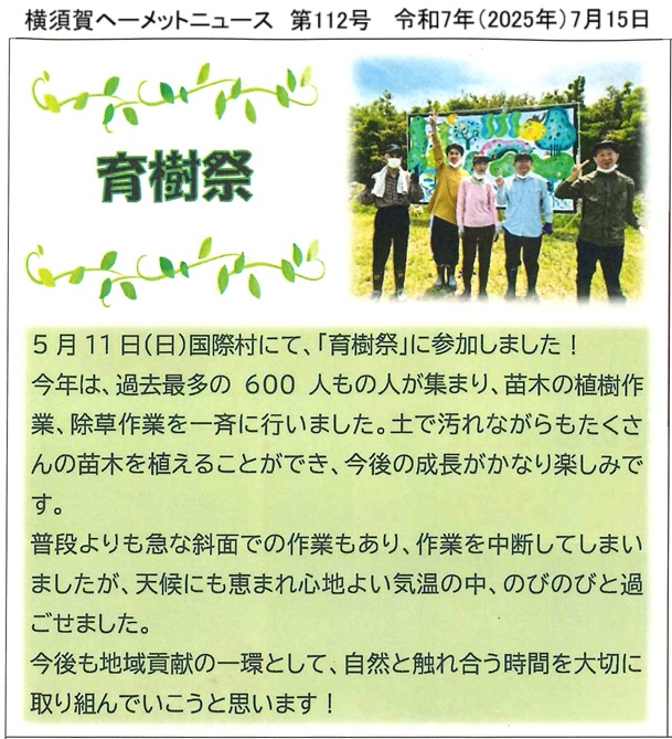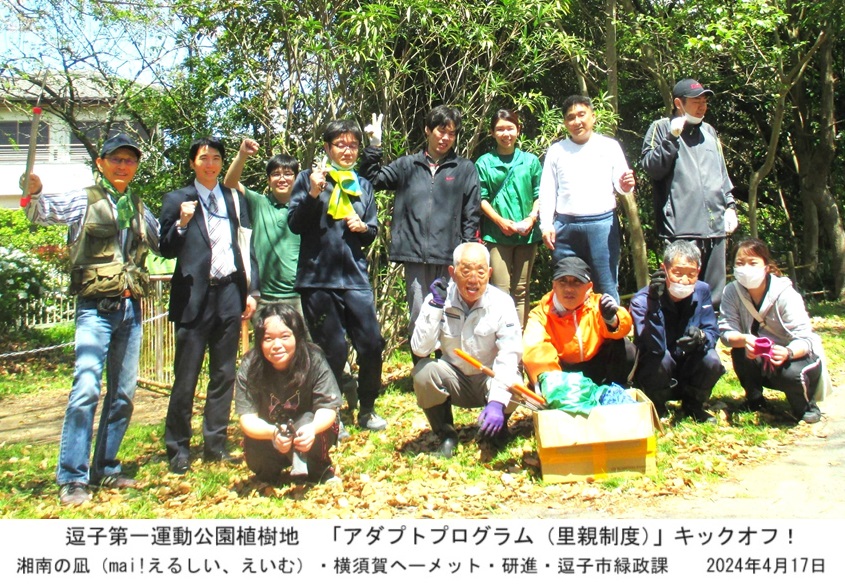 そこで、同公園が導入しているアダプトプログラム(里親制度)を適用して、私達が植樹地の育樹作業を引き受け保全して行くこととしました。2024年度から、地元の(社福)湘南の凪mai!えるしい/えいむ及び(社福)よこすか黎明会(横須賀ヘーメット)の皆さんが、「どんぐりブラザーズ」活動の一環として育樹に参加してくれています。