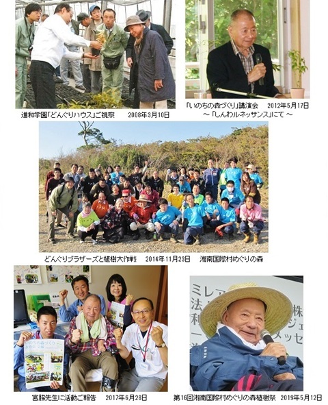 宮脇先生にご指導頂いた「いのちの森づくり」をこれからも地道に実践することで、先生のご恩に報いて参りたいと思います。宮脇先生!親身なるご指導を頂き、有難うございました。先生の教えをしっかりと胸に刻み、一同で力を合わせチャレンジして参ります。