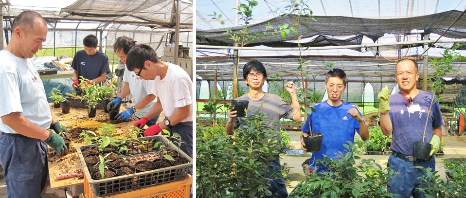 ・作業:①苗木・資材運搬・納品 ②ポット苗づくり指導