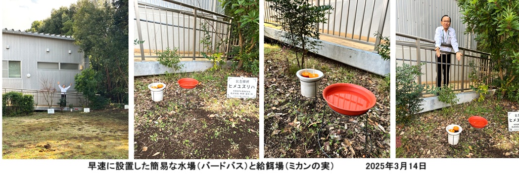 野鳥調査は、所定の手法を用いて、春夏秋冬の年4回実施し、この度、年間報告書を拝受しました。2025年3月13日、同社社長の樋口公平様が来訪され、野鳥調査の結果に関して詳しくご報告頂きました。「しんわルネッサンス」では、「いのちの森づくり」による森が育まれ、周囲のブルーベリー畑(ブルーベリーガーデンしんわ)や近隣の延命寺の緑、広大な畑が連なる環境が幸いし、年間を通じて31種類の野鳥が確認されました。その内、18種類が敷地内で確認されています。希少種は7種、特に生態系の頂点の猛禽類であるツミ、オオタカ(準絶滅危惧種)の回遊が見られたことは感激です。繁殖は、敷地内ではメジロ1種のみでしたが、周囲を含めた繁殖行動は13種を確認。また、外周の植樹帯とブルーベリー畑を中心に15種が餌を捕った記録が報告されました。野鳥の生息に良好な環境が保全されていることが判りました。