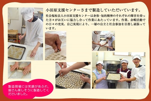 社会福祉法人小田原支援センター(製パン部門)で働く障害のある方々が、厳選された材料から心を込めて丁寧に作業に励んでおり、研進が仲介させて頂いています。