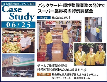 また、(株)しまむら様(平塚市の有名スーパー)より、バックヤード業務の仕事を中心にご発注頂き、2013年度より同社にスーパー業界初となる特例調整金が支給されています。