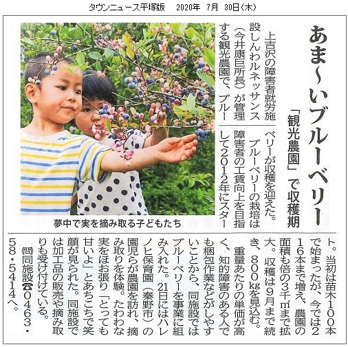 地元のタウンニュース(地域情報紙)が、毎年、ブルーベリーのシーズンの到来を伝えています。