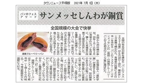 パンのフェスアワード/湘南ブルーベリーぱん ブロンズ賞!(2021.7.1)