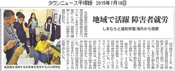 2015年7月8日、JICA(国際協力機構)の研修事業の一環として、バングラディシュ、ジャマイカ、フィリピン等6ヶ国の研修員が、進和学園利用者が施設外就労を行っている「しまむらストアー」を視察したことを報じています。