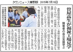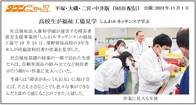 2015年7月10日、 神奈川県立秦野曽屋高校の3年生を対象とする「社会福祉基礎」授業の一環として、福祉工場「しんわルネッサンス」を見学したことを報じています。