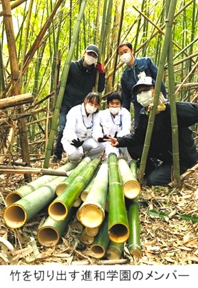 「千鳥うちわ」は、江戸初期から伝わる伝統工芸品です。羽塚順子様(MotherNess Publishing代表)の仲介により、2020年秋から、福祉工場「しんわルネッサンス」(平塚市)に隣接する竹林において、「千鳥うちわ」の原材料となる真竹を進和学園メンバーが切り出して提供させて頂いています。