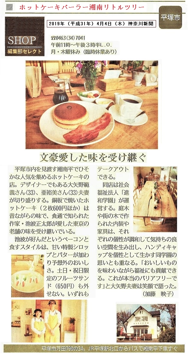 神奈川新聞/ホットケーキパーラー湘南リトルツリー(2019.4.4)