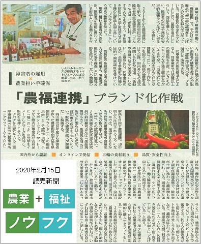 読売新聞「『農福連携』ブランド化作戦」(2020.2.15)