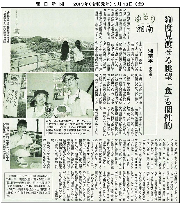 朝日新聞/ホットケーキパーラー「湘南リトルツリー」(2019.9.13)