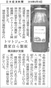 日本経済新聞・神奈川新聞「トマトジュース開発/横浜銀が支援」(2016.6)