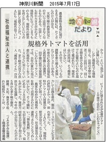 神奈川新聞「社会福祉法人と連携・規格外トマトを活用」(2015.7.17)