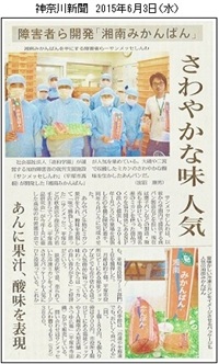 神奈川新聞 「障害者ら開発 湘南みかんぱん」(2015.6.3)