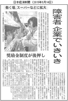 日本経済新聞 スーパー「しまむら」障害者への発注を紹介/奨励金制度が後押し!(2015.5.14)