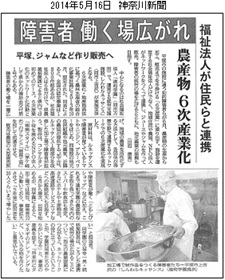 神奈川新聞「進和学園 農産物六次産業化/障害者就労支援」(2014.5.16)