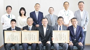 地球環境保全に向けた実践的活動や温室効果ガスの削減に寄与する優れた取り組みを行った神奈川県所在の団体や個人に対し、その功績を称え表彰を行うもので、平成28年度の同賞受賞者(地球環境保全部門)7件の内、平塚市を拠点に活動する3団体が同時受賞しました。私共が推進する「いのちの森づくり」プロジェクトも受賞の栄誉に浴し、市長を囲んでの報告会に参加させて頂きました。