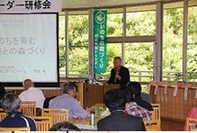 この裏山は、昔より「道正山(ドウショウヤマ)」と呼ばれ、2014年7月26日(土)、「道正山るーたん♪の森」と命名され、地元市民に開放するためのセレモニーが行われました。進和学園「いのちの森づくり」のプロジェクト・リーダー川下都志子(研進)が講師を務めたことを紹介しています。