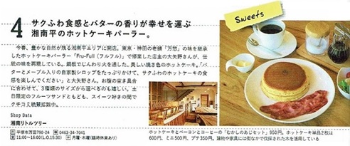 同雑誌の「湘南エリア別備忘録」の平塚・大磯エリアにおける5件の内の一つに「湘南リトルツリー」を取り挙げ、光栄なことに「サクふわ食感とバターの香りが幸せを運ぶ湘南平のホットケーキパーラー」とのタイトルで紹介頂いています。