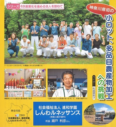 「技術と普及」2018年4月号(Vol.55)(全国農業改良普及職員協議会機関誌)のシリーズ「6次産業化を進める法人を訪ねて」において、(社福)進和学園・技術と普及hp2018041.jpgしんわルネッサンスの農産物加工場「湘南工房」を紹介する記事が掲載されました。