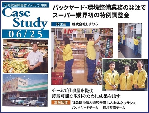 光栄なことに、私達が取り組むホンダ車部品事業及び地元スーパー「しまむらストアー」での施設外就労の2つの事例が、本邦自動車メーカー及びスーパー業界における特例調整金支給の初ケースとして取り挙げられています。