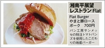 「トマトバンズ」は、観光スポット湘南平の展望塔で営業する「湘南平展望レストランFlat」のこだわり地産メニューFlat Burgerに使用されていることが紹介されています。(P.54)