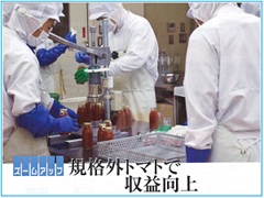 生産者(農家)が手塩にかけて育てながら、規格外の形・サイズ等のため廃棄処分を余儀なくされていたトマトを加工してジュースやピューレにすることにより、ロスを減らし農家の収入アップと加工作業に励む障害者の就労支援に繋がっていることを紹介しています。