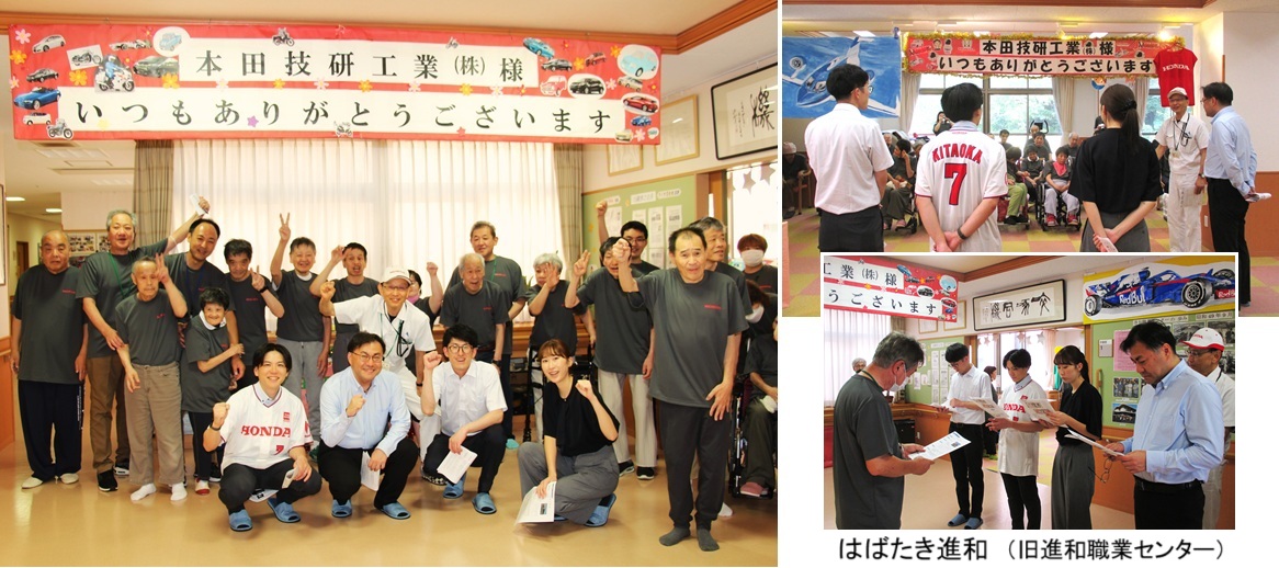 皆様には、就労支援を担う「しんわルネッサンス」及び「サンメッセしんわ」の他に、生活介護施設「はばたき進和」(旧「進和職業センター」)にも立ち寄って頂きました。応援団hpIMG_6035.jpgこれらの施設を利用されている方々も、嘗てはホンダ車部品の仕事に従事していた方が多く、Honda様のご来訪を心待ちにしていました。