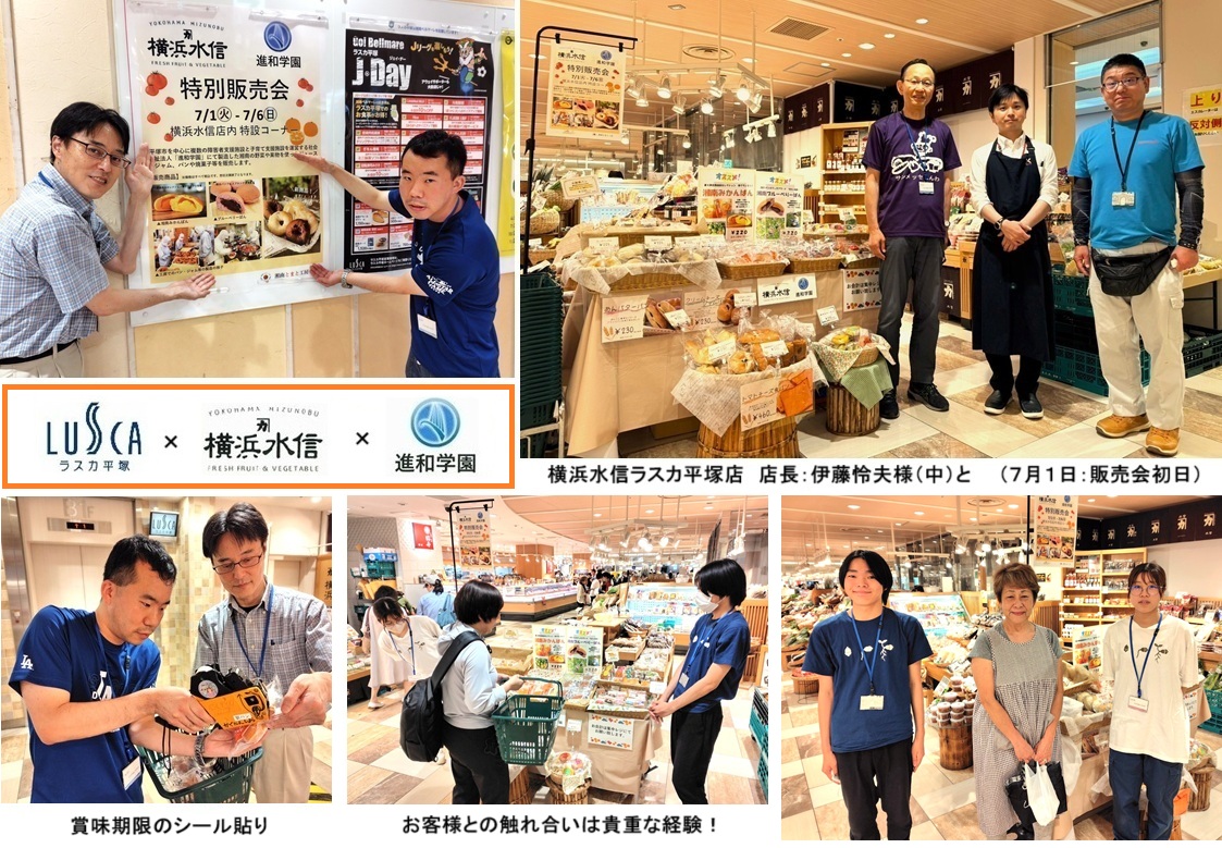 2025年7月1日(火)~7月6日(日)の6日間、ラスカ平塚の地下1階、横浜水信様の一画において、「横浜水信・進和学園」特別販売会を実施させて頂きました。ラスカを運営される(株)JR横浜湘南シティクリエイト様のご協力も得て、7回目の開催となります。今回も、横浜水信様の会計システムに商品コードを登録願い「集中レジ」を利用して、進和学園の自主製品(パン・菓子・トマト&みかんジュース、ジャム類)を販売させて頂きました。