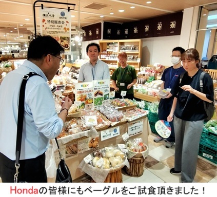 進和学園出品の竹飾り「宝船」をご覧頂いた後、ラスカに立ち寄り、横浜水信様での特別販売会の模様も視て頂きました。当日の当番の学園メンバー(利用者&職員)とも交流頂き、皆で記念写真を撮影!ホンダ様ご視察コースのラストを飾りました!