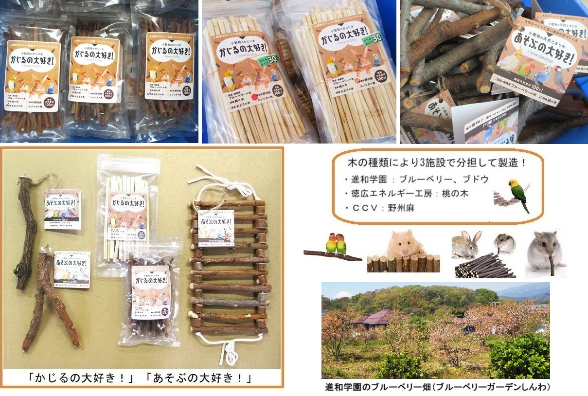 本商品は、小動物(ハムスター、ウサギ、小鳥等)のためのもので、羽塚順子様(MotherNess Publishing代表)の仲介で、一般社団法人徳広エネルギー工房(長野県大町市)及びNPO法人CCV(栃木県鹿沼市)と研進・進和学園が連携して製造・販売しています。