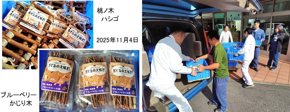 進和学園では、自家栽培しているブルーベリーの剪定枝を活用すると共に、山梨県の農家からお譲り頂いているブドウの木を商品化、長野の徳広さんは、地元の桃ノ木を、栃木のCCVさんは珍しい野州麻の茎を活用して自主製品としています。