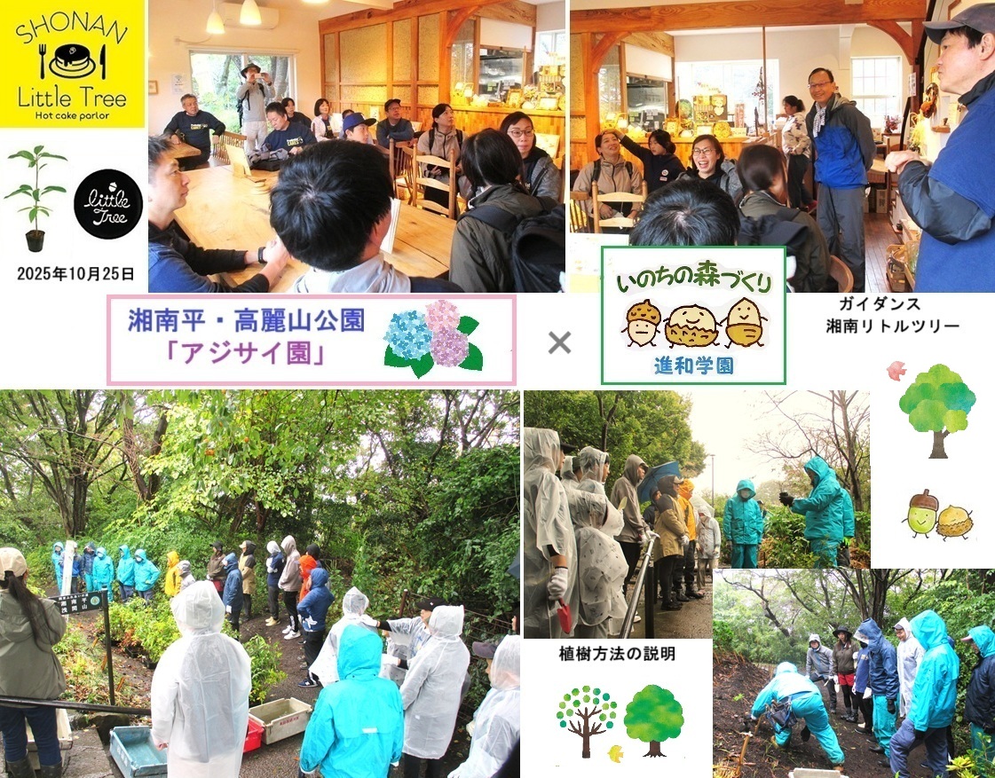 永年、進和学園が大切に育てて来たアジサイと「いのちの森づくり」のコラボが実現したことを、大変嬉しく思います。ご支援を頂いた平塚市並びにPGF生命の皆様には、心より感謝申し上げます。 「あじさい園」は、更に奥へ広がっており、次年度以降も同様の植樹活動を継続して行く予定です。