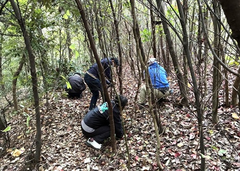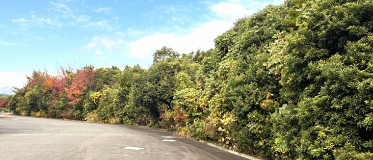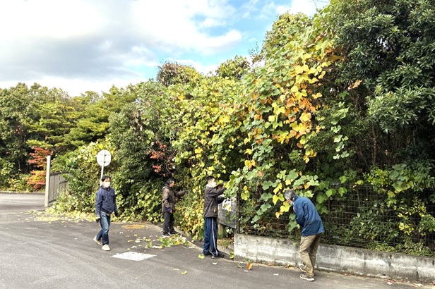 2025年11月20日、この日は、植樹地内の蔓(ツル)性植物、特に葛(クズ)を駆除する仕事を請け負わせて頂きました。社会福祉法人小田原支援センターの皆さんと弊社スタッフが力を合わせて取り組みました。最近の猛暑の影響により、蔓(ツル)性植物の繁茂は著しく、樹々全体に覆い被さり日光を遮ってしまい、その被圧により樹木の生長を妨げてしまう事例が多発しています。