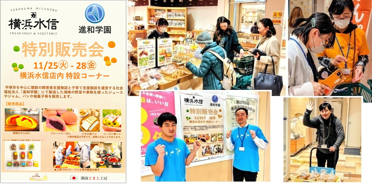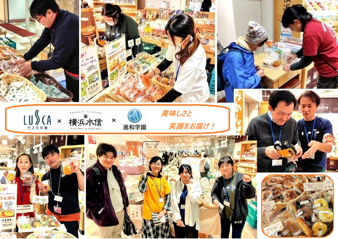 2025年11月25日(火)~28日(金)の4日間、ラスカ平塚の地下1階、横浜水信様の一画において、「横浜水信・進和学園」特別販売会を実施させて頂きました。ラスカを運営される(株)JR横浜湘南シティクリエイト様のご協力も得て、9回目の開催となります。今回、進和学園メンバーの参加が難しい土日曜日は外し、他のスケジュールも勘案してこれまでより短い4日間とさせて頂きました。
