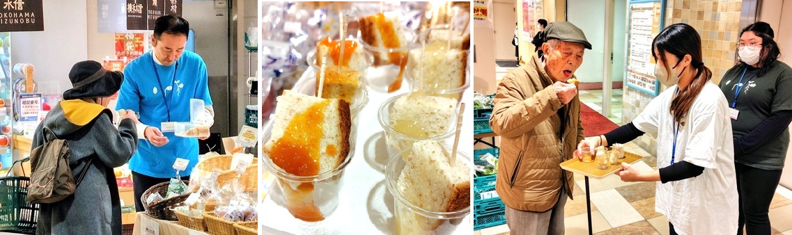 横浜水信様の特製ジャム各種と進和学園(湘南こむぎ工房)のグラハム食パンを合わせた試食販売という新たな試みも行いました。